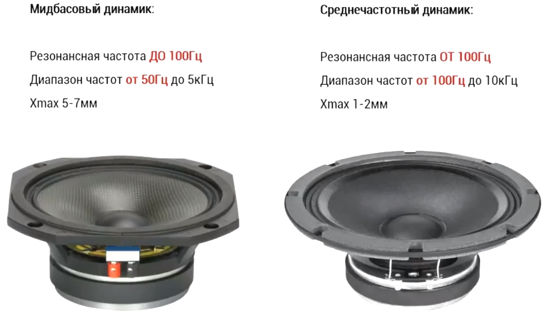 Чем отличается мидбас от среднечастотников